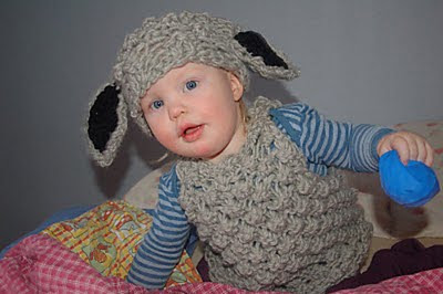 There's a child's lamb costume, complete with lamby-earred hat for 3-4 year olds, a free pattern written in Norwegian and English on Ravelry.