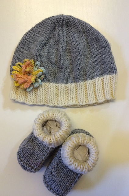 She's taken the free booties pattern and paired it with the beanie pattern and knit a lovely gift.