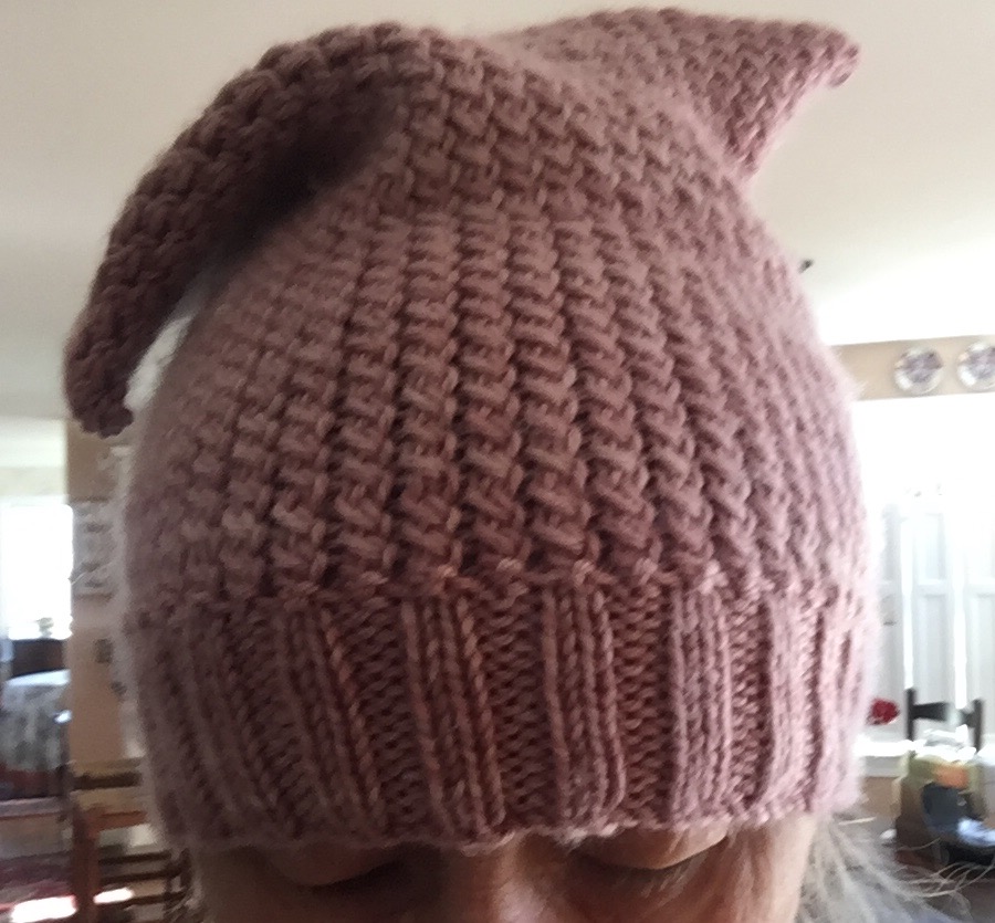 Here's my latest free pussy hat pattern, "Here kitty, kitty," which has a little more durability, pointier ears, and a more interesting stitch pattern, and can even be worn with a stylish, reassured flair!