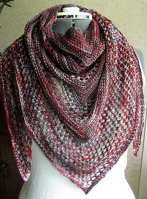 A free shawl pattern and a free scarf pattern, suitable for a man, both perfect for summer warm weather knitting, both interesting no-brainers. No oxymorons here, it's true: interesting patterns you don't have to think about. So whilst sitting at the beach, talking to friends and family, you can still keep knitting without losing your place in the pattern.Both of these projects are extremely portable and won't take up much room in your travel bag. Don't stop knitting and get ahead on your gift list!